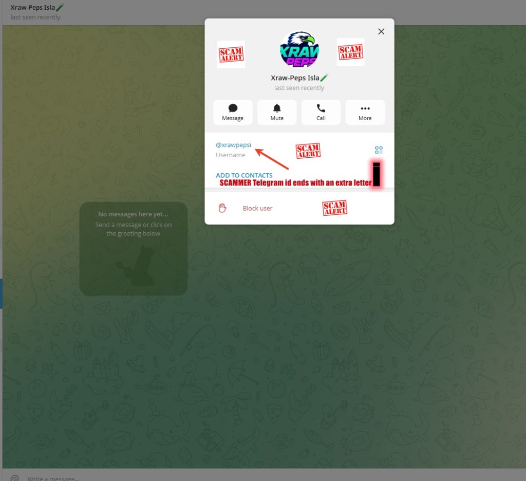 It seems the scammer list works. They changed their scamming telegram account from @xrawpepsS to a new one xrawpepsi